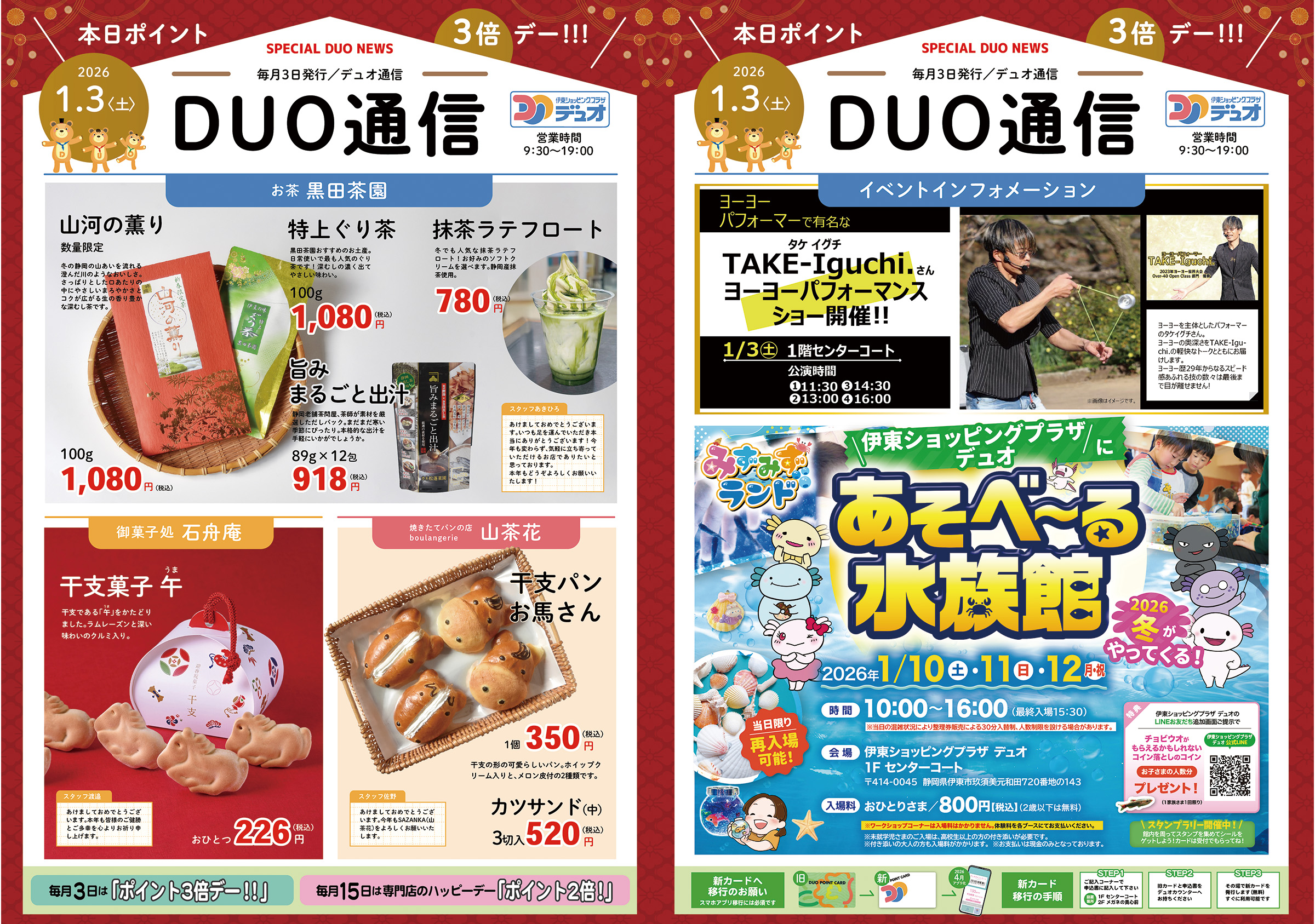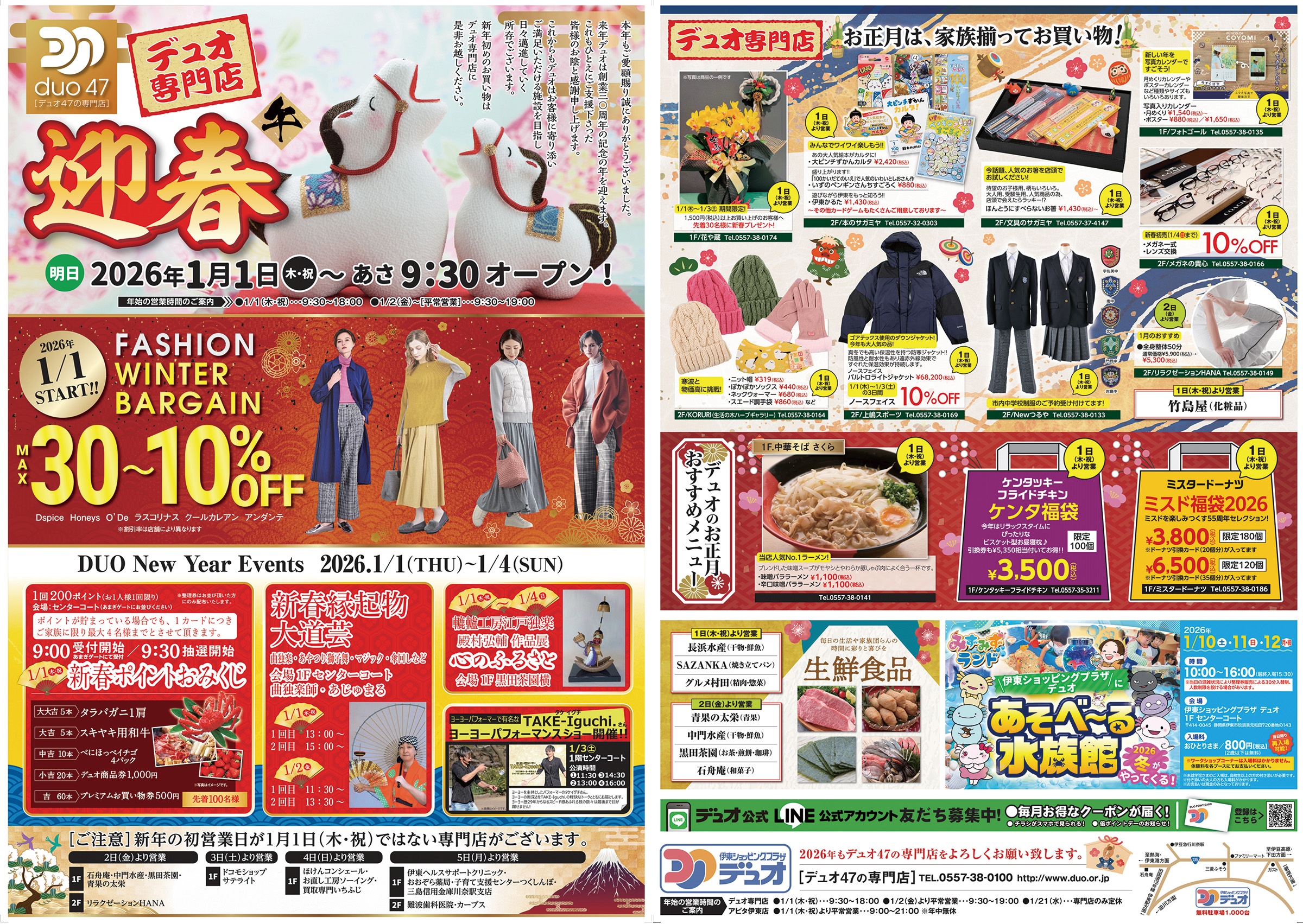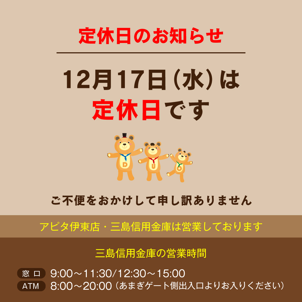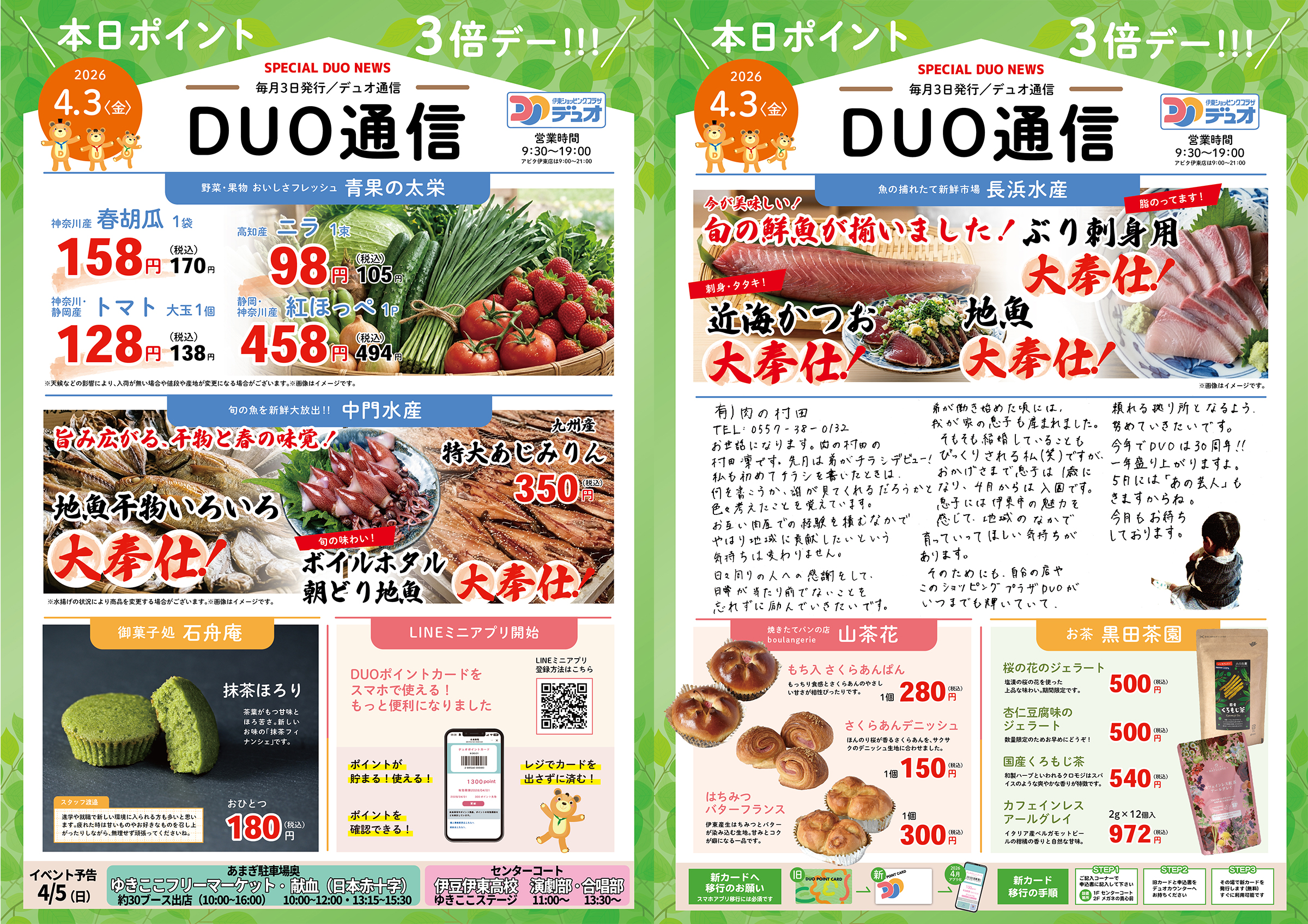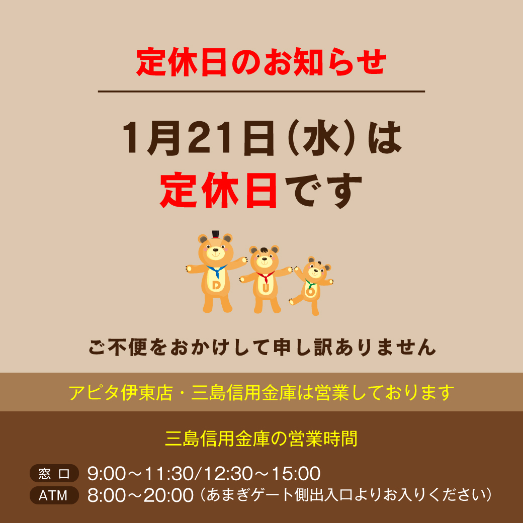 専門店 9:30〜19:00(水曜不定休) アピタ 9:00〜21:00(年中無休)