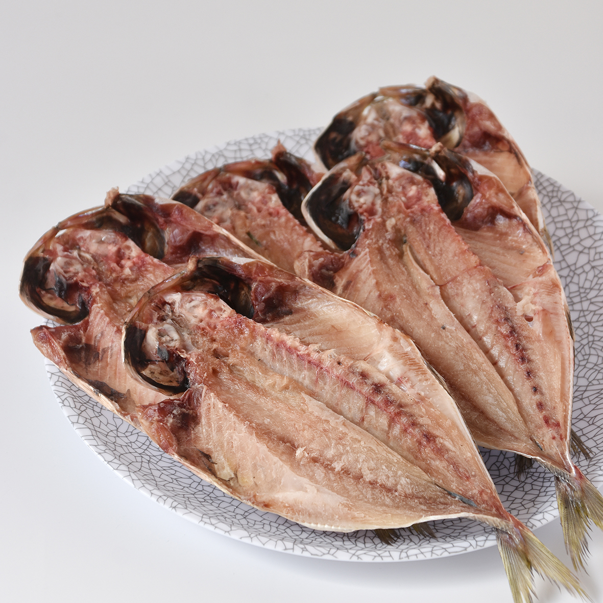 脂の乗りが良い九州産の上物真あじを、1枚1枚丁寧に手開きし、塩加減にもこだわって干物に仕上げました。