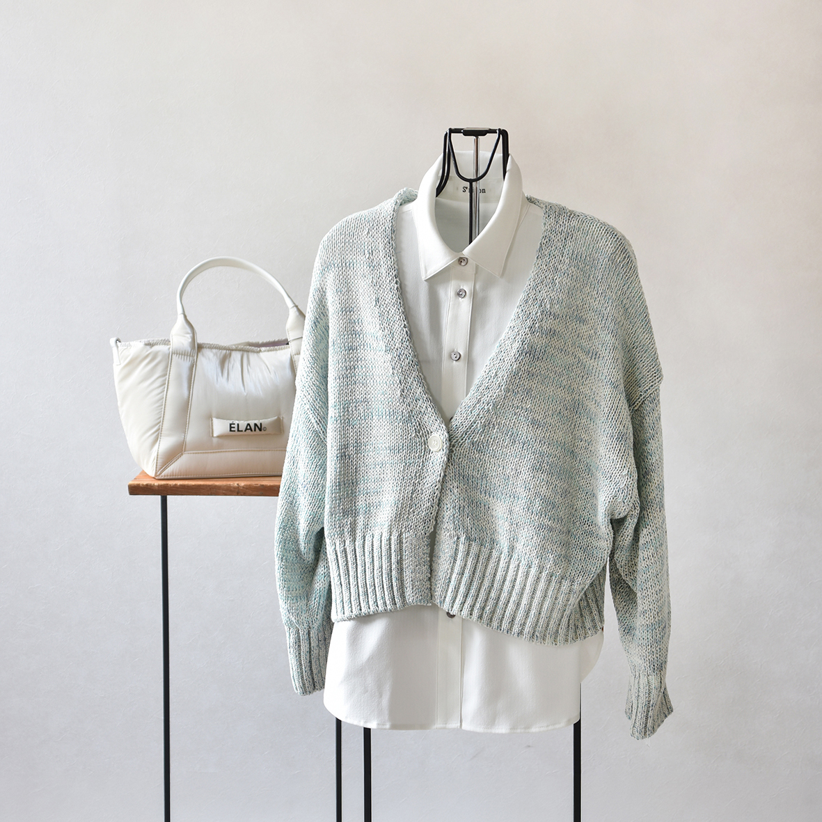 やわらかな色合いと上品な風合いで、ブラウスやシャツにさっと羽織るだけで季節感のあるコーディネートに。