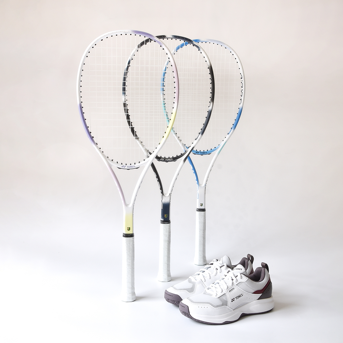 さらに、足元には安定感のあるヨネックス パワークッション プロムーブクラシック テニスシューズを。