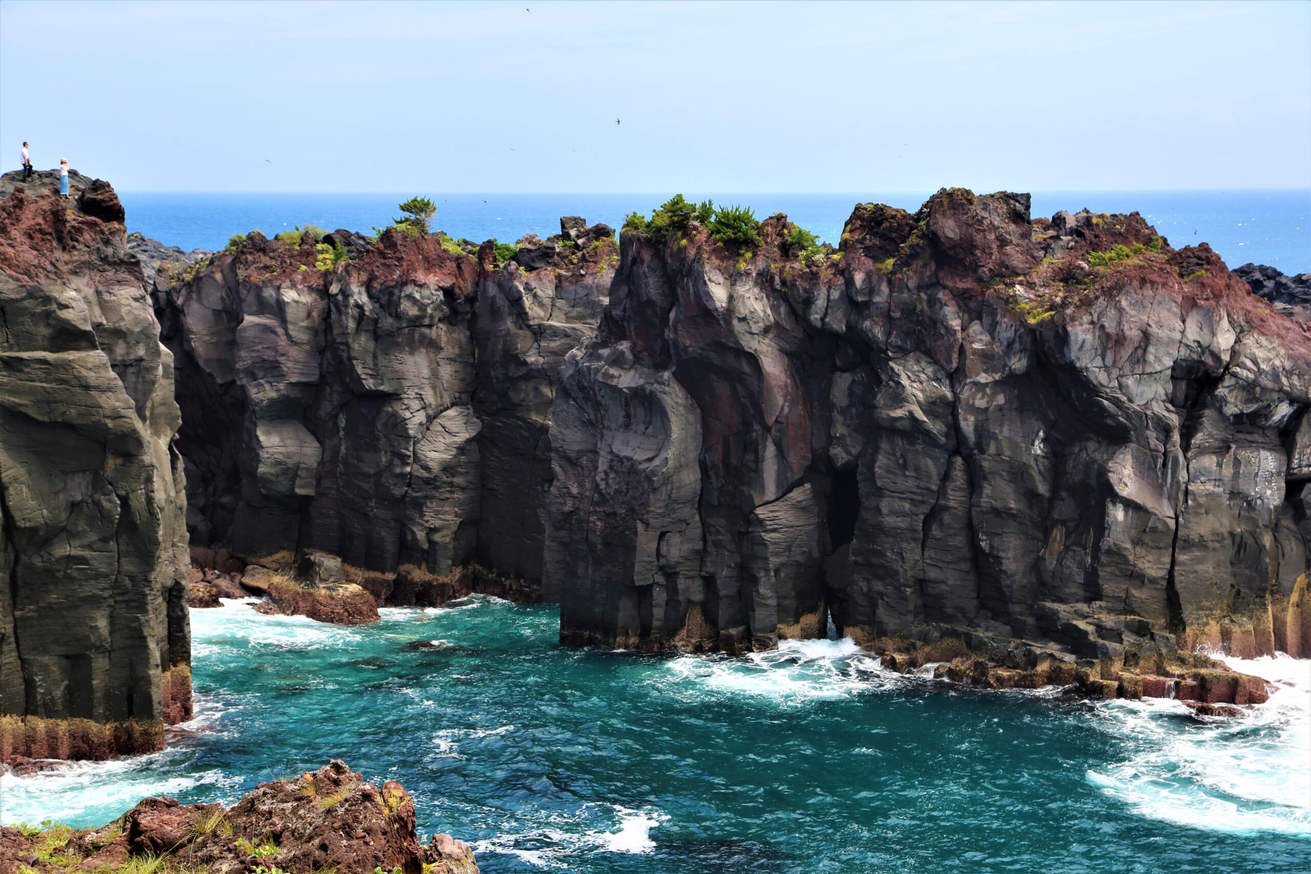 約4,000年前の大室山噴火によって流れ出した溶岩が冷え固まり、全長9kmにもわたる切り立った断崖が形成されています。海と崖とのコントラストは迫力満点で、晴れた日には海面の青さが一層際立ちます。その地形は伊豆半島ジオパークにも選ばれており、学術的にも貴重なエリアとして注目されています。